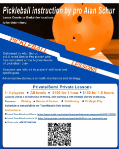 For players with some court experience looking to improve consistency of their shots. This clinic will help players develop and maintain solid serve and return of serve shots. There will be emphasis on the dink shot and ways to develop this very important skill. All learning will be reinforced through game play or game play scenarios.